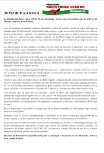 Nuevamente, la Platafroma Bases fuera, OTAN No de Andalucía convoca a la marcha a Rota para exigir su defiunitivo cierre como trampolín de proyección de todas las fuerzas ofensivas de los EEUU contra los pueblos y naciones que se resisten a su dominación: