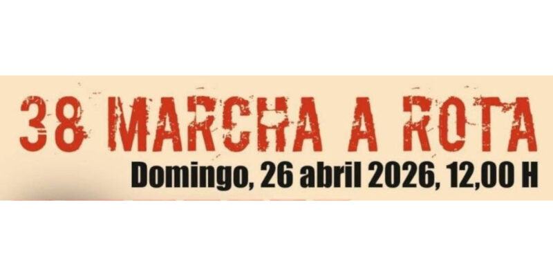 Las organizaciones convocantes confirman la convocatoria de la 38ª Marcha a Rota, ya anunciada por este medio hace unos días, para el domingo 26 de abril, con salida desde la avenida de la Libertad 36 (Junto a la Policía Local), a las 12:00 horas.