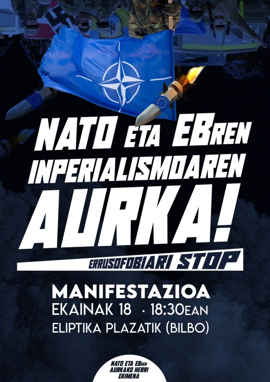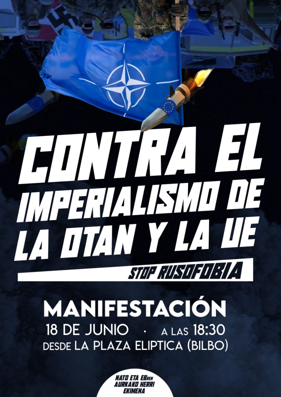Compañeros antiimperialistas de NATO ETA EB-ren AURKAKO HERRI EKIMENA nos hacen llegar el anuncio de la Manifestación convocada para el 18 de junio en Bilbao,