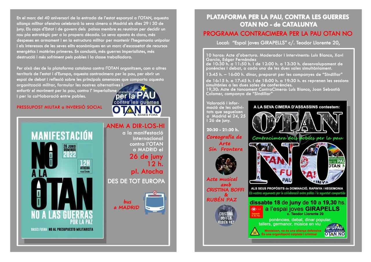 Organizado por la Plataforma per la Pau, Contra les guerres, OTAN No, Bases fora.