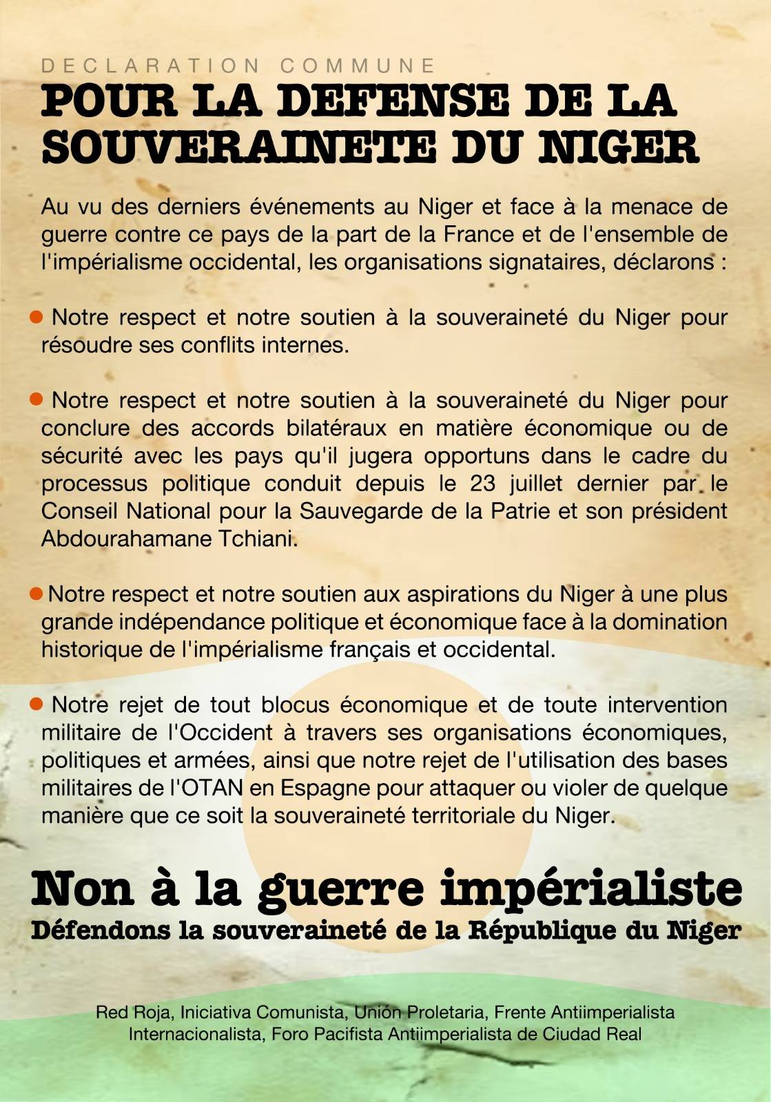 By Frente Antiimperialista Internacionalista Share DeclaracionesDestacadosImperialismo e InternacionalismoSahel Declaración unitaria en defensa de la soberanía de Níger 19 agosto 20231902 views0 Comparte esto: Haz clic para compartir en Facebook (Se abre en una ventana nueva) Facebook Haz clic para compartir en X (Se abre en una ventana nueva) X Haz clic para compartir en Telegram (Se abre en una ventana nueva) Telegram Haz clic para enviar un enlace por correo electrónico a un amigo (Se abre en una ventana nueva) Correo electrónico Haz clic para imprimir (Se abre en una ventana nueva) Imprimir Relacionado Share