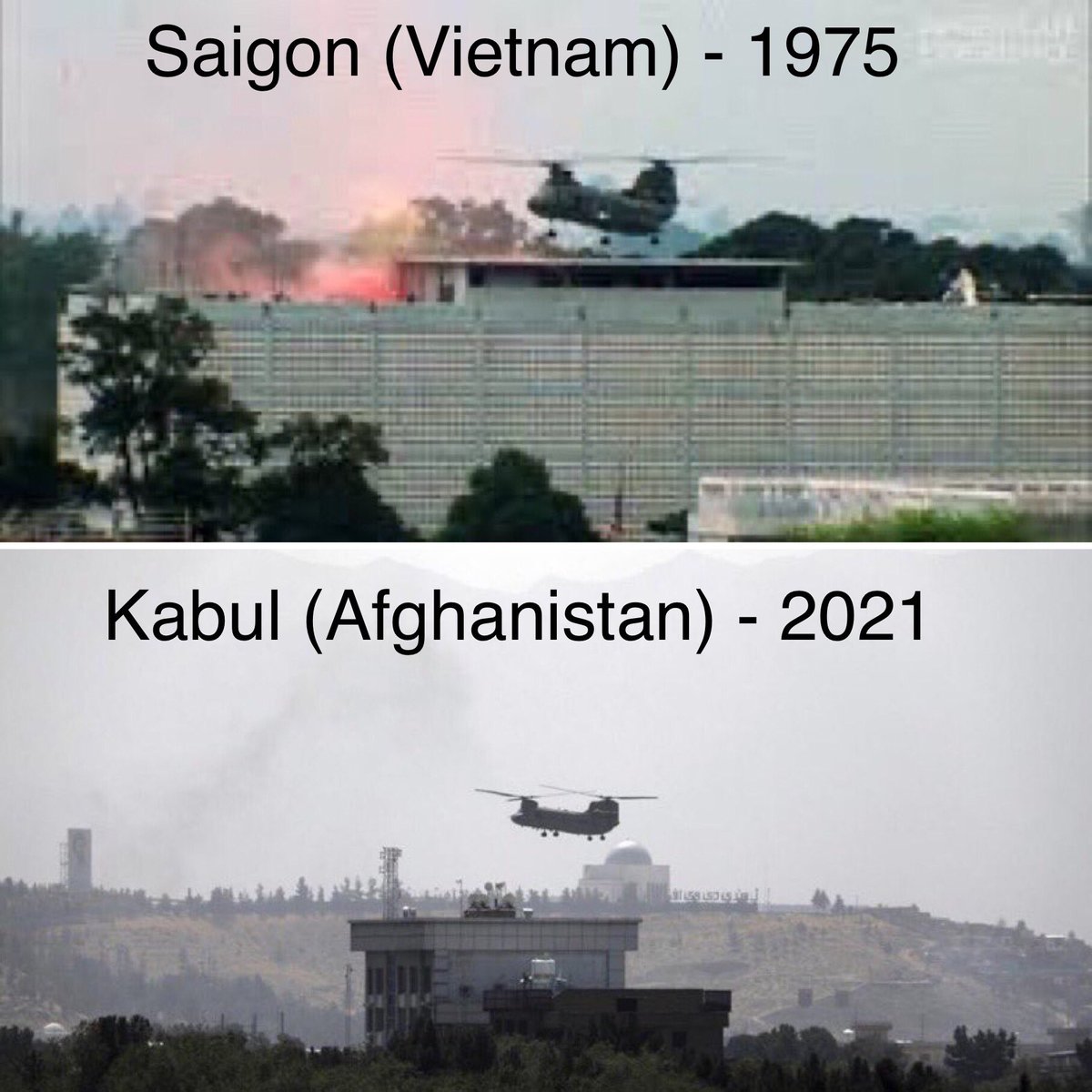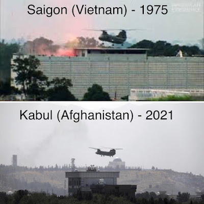Hoy los talibanes han entrado ya en partes de Kabul sin que los bombardeos de EEUU lo hayan impedido. Las escenas de Saigón en 1975 están ahí, se repiten. Igual. Para EEUU, y sus vasallos, es la derrota más candente desde el final de la guerra de Vietnam. Pero hay diferencias: entonces era la derrota del capitalismo imperialista y ahora es la certificación empírica de que los «valores democráticos del mundo libre» -y su acompañamiento de drones, bombardeos, especialistas, ejércitos, cooperantes y demás- no son más que una fórmula verbal que sigue encandilando a quienes siguen empeñados en decir que hay un imperio aunque ese imperio ya no sea imperio.