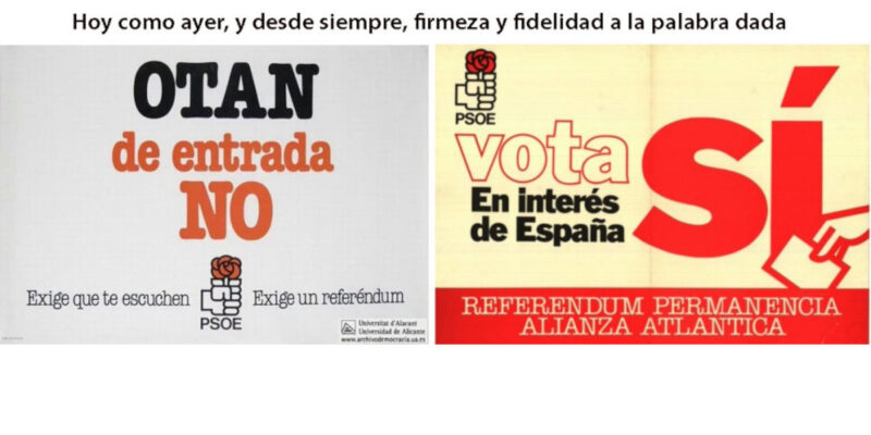 Cuatro años más tarde, gobernando ya los socialistas, se celebró el Referéndum de la OTAN. El diseño trampa de la pregunta y la utilización por el gobierno de la única televisión existente en la época (TVE) se enmarcaron dentro de las múltiples irregularidades cometidas por el partido socialista de Felipe González para mantener a España en la OTAN.