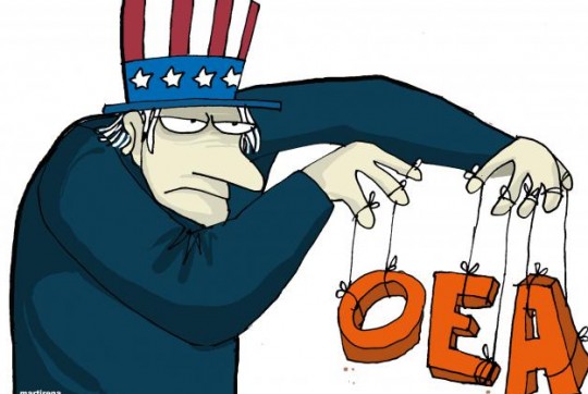 La OEA, que calla totalmente sobre la represión en Chile (calla acerca de las violaciones y mutilaciones perpetradas por los carabineros porque el gobierno chileno es totalmente funcional al saqueo capitalista), en cambio sí se lanzó contra Bolivia para aducir un supuesto fraude en las elecciones del 20 de octubre (ejerciendo su papel pro-imperialista). Ante las acusaciones de la OEA (que replicaban la versión de la burguesía golpista), Evo Morales invitó, con suma ingenuidad, a «verificadores de la OEA». Mientras tanto los mercenarios fascistas seguían infundiendo terror en las calles. Finalmente la OEA emitió su amañada decisión política, siendo el pistoletazo para los últimos pasos del Golpe de Estado en Bolivia, algo que era fuertemente previsible. Aday Quesada expresa: «El gobierno de Evo Morales ha cometido «errores» difícilmente explicables. Resulta absolutamente insólito que el Ejecutivo boliviano solicitara la «supervisión» de la OEA (Organización de Estados Americanos), para que procediera al peritaje y contabilización de los votos resultantes de las pasadas elecciones presidenciales. (…) esa solicitud de «arbitraje» a la Organización que más genuinamente representa los intereses estadounidenses en América Latina era una petición suicida, semejante a la de encomendar a un zorro la custodia de un gallinero. (…) el dictamen final de la OEA estaba rubricado antes de que se realizara la «inspección». La OEA dictaminó velozmente lo que correspondía al papel que los Estados Unidos le han encomendado»1.