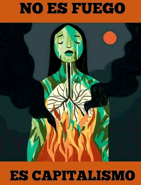 La Amazonía está siendo aniquilada por saqueo capitalista: deforestada por multinacionales mineras y latifundio, codiciadas sus tierras para el agro industrial, la ganadería masiva, codiciados sus recursos para el aberrante modo de producción capitalista. Lleva tres semanas ardiendo. Miles de animalitos calcinados, decenas de especies ya en extinción desapareciendo, la mayor selva del planeta diezmada, pueblos indígenas desplazados y exterminados al extinguirse su hábitat… Y todo para que un puñado de multimillonarios capitalice sobre el saqueo del planeta. CAPITALISMO ES BARBARIE.