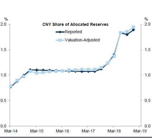 Con todo el organigrama ya en marcha, y habiendo sido arropado por otras iniciativas de calado como el Banco Asiático de Inversión en Infraestructuras (2016) y la Nueva Ruta de la Seda, sólo quedaba dar el paso definitivo: abrir todo ello al resto de países. Y así se observa que hoy son cada vez más los países que incorporan al yuan en sus monedas de reserva y que esta moneda ya supone el 1’9% como moneda de reserva del mundo. ¿Poco? Echad un vistazo porque su auge ha ocurrido en solo un año.