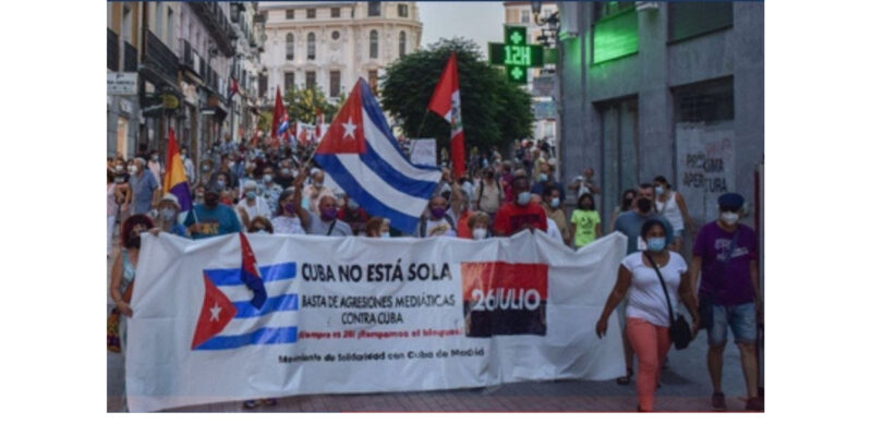 Manifestación estatal por el fin del bloqueo de EE. UU. contra Cuba en Madrid