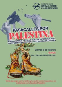 Desde la Asamblea de Madrid Contra el Rearme y la Militarización, hoy salimos a la calle uniéndonos a las protestas convocadas y a su grito: