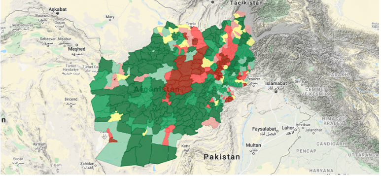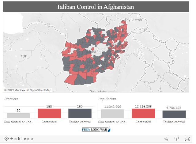 Esto es según una página pro-talibán. El verde oscuro es control absoluto, según ellos, pero como veis es una situación muy similar para unos y otros.